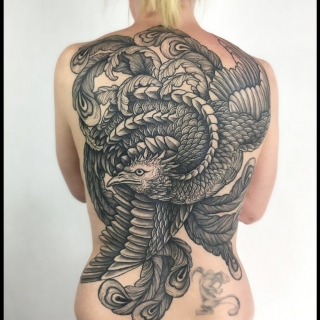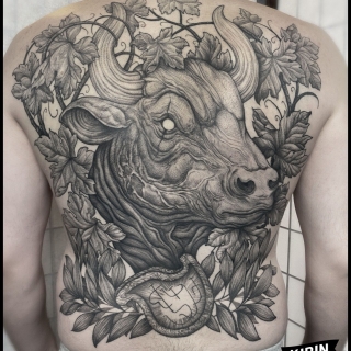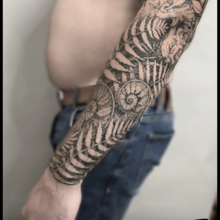 • Мне особенно близки природные мотивы, где травы, корни, грибы и ягоды служат фоном для более крупных объектов — зверей, птиц, черепов или чего душа пожелает. Также нравятся дизайны с органикой и крупные формы с детализированными фрагментами.
